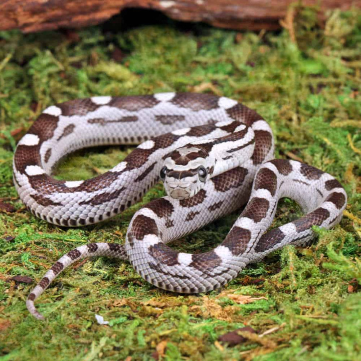 The Anery Motley Cornsnake is a captivating morph of the widely popular corn snake, scientifically known as Pantherophis guttatus. Corn snakes, native to the southeastern United States, are beloved by herpetologists and reptile enthusiasts alike due to their vibrant colors, docile nature, and adaptability as pets. The Anery Motley variation combines two distinct traits: the anerythristic gene, which eliminates the red pigmentation, and the motley pattern, characterized by a series of bold, dark splotches along the snake’s body. This striking combination results in a visually appealing snake that showcases shades of gray, black, and white, making it a favorite among collectors.The genetic traits of the Anery Motley make it an intriguing subject for herpetological studies. The anerythristic gene, which results in the absence of red coloration, affects not only the aesthetic qualities of the snake but also contributes to its overall health. With reduced pigmentation, these snakes may be less susceptible to certain types of skin damage associated with UV exposure, thus thriving in both captive and natural environments. The motley pattern gene further enhances this morph’s beauty, creating a contrast that highlights the unique texture of the corn snake’s scales. This combination not only enriches the genetic diversity within the corn snake population but also increases the allure of breeding projects among enthusiasts who seek to produce more unusual and visually striking morphs.Caring for an Anery Motley Cornsnake is relatively straightforward, making it an excellent choice for both beginner and experienced reptile keepers. Their docile temperament means they are less likely to exhibit stress-related behaviors, making handling enjoyable for owners. In captivity, they require a secure habitat with appropriate temperature gradients, humidity levels, and a varied diet consisting primarily of appropriately sized rodents. As with all snakes, maintaining a clean and safe environment is crucial to their health and longevity. Overall, the Anery Motley Cornsnake not only serves as an aesthetically pleasing companion but also exemplifies the fascinating genetic complexities found within this beloved species. Through responsible care and an appreciation for their unique traits, keepers can enjoy the beauty and charm of these remarkable reptiles.
