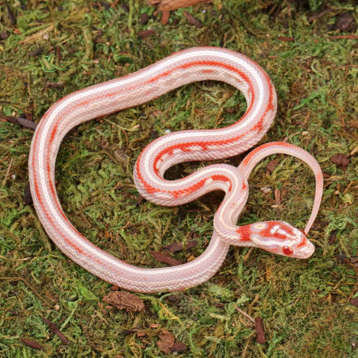 The Candy Cane Tessera Cornsnake is a striking morph of the corn snake, known for its exceptional coloration and patterning that captivates both reptile enthusiasts and casual observers alike. Cornsnakes, in general, are a subspecies of the eastern rat snake and are popular within the pet trade due to their docile nature, manageable size, and ease of care. The Candy Cane Tessera morph is particularly appealing because of its unique appearance, characterized by a vibrant red and white pattern that resembles the classic candy cane found during the holiday season. This morph showcases a tessera pattern, which is distinguished by its reduced black markings, giving the snake a more streamlined and vivid appearance.The breeding process to produce Candy Cane Tessera Cornsnakes involves selective pairing of tessera and specific color morphs. Tessera morphs are known for their long, unbroken stripes that replace the traditional splotchy patterns typical of wild-type corn snakes. This genetic manipulation results in a more striking visual appeal, enhancing the snake’s vibrant colors. As breeders focus on maintaining and enhancing these traits, the Candy Cane Tessera becomes a testament to the fascinating world of reptile genetics, showcasing how selective breeding can lead to spectacular variations within a single species. This morph not only highlights the beauty of corn snakes but also illustrates the diversity and adaptability of reptiles in captivity.Beyond their aesthetic qualities, Candy Cane Tessera Cornsnakes are also known for their gentle dispositions, making them excellent pets. These snakes are usually easy to handle and display relatively simple care requirements, which is part of the reason for their popularity among novice snake keepers. Proper husbandry, including temperature regulation, appropriate feeding, and habitat enrichment, contributes significantly to their health and well-being. Importantly, they also play a vital role in educational settings, where they help demystify reptiles and foster an appreciation for the complexity of reptile biology. As fascination with exotic pets continues to grow, the Candy Cane Tessera Cornsnake remains a brilliant example of the blend between beauty, education, and responsible pet ownership.