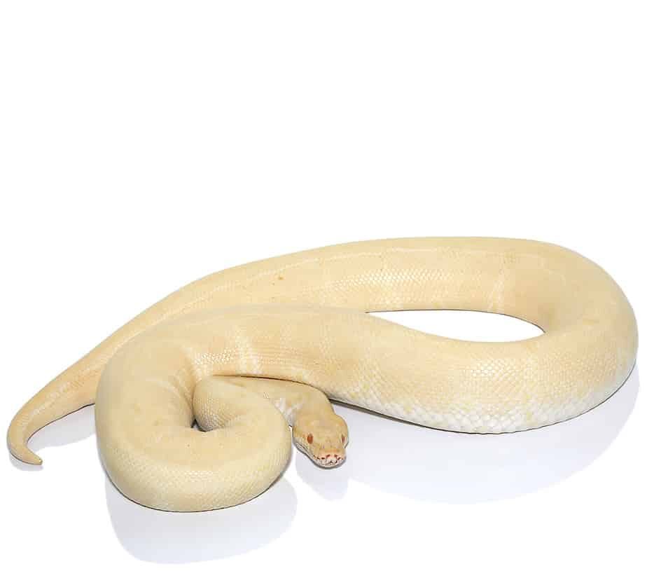 - The adult female albino ball python is a striking and unique reptile that stands out from other ball python variations due to its lack of pigmentation. These snakes have a beautiful yellow and white coloration with bright red eyes, making them a truly captivating sight for reptile enthusiasts. Albino ball pythons are known for their docile nature, making them popular pets for beginners and experienced snake keepers alike. Despite their lack of natural camouflage in the wild, these snakes are highly sought after in the pet trade due to their stunning appearance.In terms of size, adult female albino ball pythons can grow to be around 3 to 5 feet in length, with females typically being larger and heavier than males. These snakes are relatively low maintenance, requiring a properly sized enclosure with adequate heating and humidity levels to thrive. They are known to be gentle and easy to handle, making them great pets for those looking for a unique and beautiful reptile companion. As with all ball pythons, the albino variation is a constrictor snake, meaning it uses its body to suffocate its prey before consuming it whole.One of the most fascinating aspects of adult female albino ball pythons is their genetic makeup and inheritance. The albino trait is recessive, meaning both parents must carry the gene in order to produce albino offspring. This has led to the creation of many different morphs and color variations within the ball python species, making them a popular choice for snake breeders and collectors. Overall, the adult female albino ball python is a stunning and fascinating reptile that continues to captivate and enchant people all over the world.