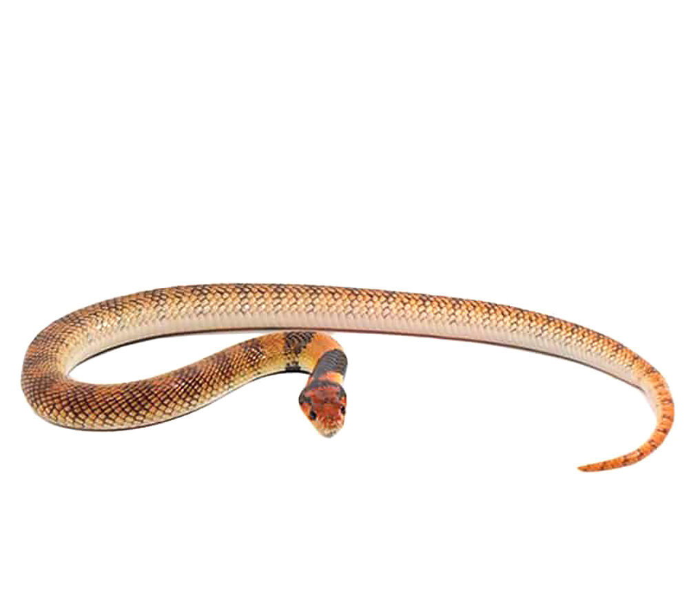 - The Angolan Coral Cobra, also known as Aspidelaps lubricus cowlesi, is a beautiful and highly venomous snake found in the southern parts of Africa, particularly in Angola and Namibia. This species is one of the most striking snakes in the region, with its slender body covered in bright orange, red, and black bands that resemble the colors of a coral reef. The Angolan Coral Cobra is a nocturnal hunter, preying on small mammals, birds, and other reptiles. Despite its stunning appearance, this snake is not to be underestimated, as its venom is potent and can be fatal to humans if not treated promptly.One of the key features of the Angolan Coral Cobra is its potent neurotoxic venom, which affects the nervous system and can cause paralysis and respiratory failure if left untreated. This makes it a danger to humans who come into contact with it, as a bite from this snake can be deadly without proper medical intervention. Due to its highly venomous nature, the Angolan Coral Cobra is not a snake to be trifled with and should be treated with caution and respect.