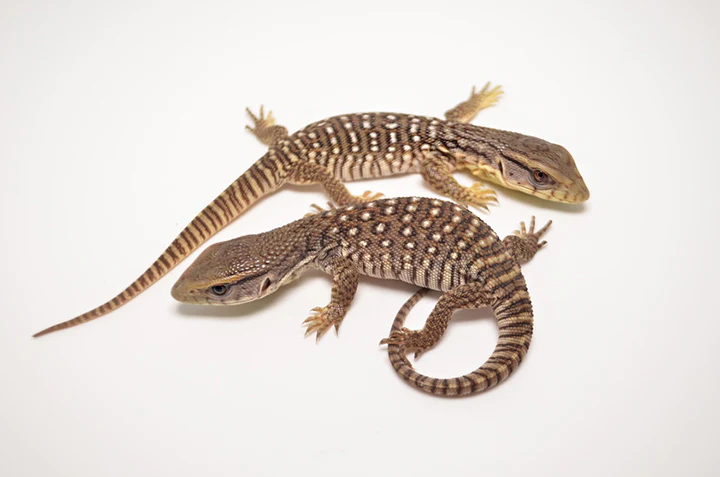 • The juvenile South African White Throat Monitor is a fascinating and unique reptile that is native to the southern regions of Africa. These monitors are known for their striking appearance, with their distinct white throats and vibrant yellow scales. Juvenile White Throat Monitors are smaller in size compared to their adult counterparts, making them popular pets among reptile enthusiasts.One of the most interesting characteristics of the juvenile South African White Throat Monitor is their advanced intelligence. These monitors are highly curious and can quickly learn to recognize their owners, making them interactive and engaging pets. They are also known for their strong climbing abilities, often seen scaling trees and exploring their surroundings. It is important for owners of juvenile White Throat Monitors to provide them with ample space to climb and explore, as well as a varied diet to ensure their health and well-being.
