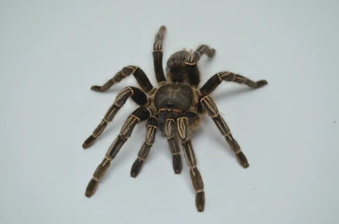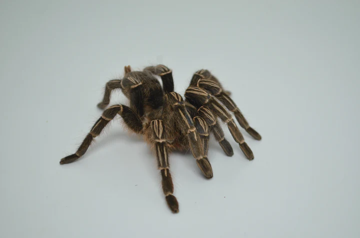 • The Stripe Knee Tarantula, scientifically known as Aphonopelma seemanni, is a stunning species of tarantula that can be found in Central and South America. Known for its distinctive coloring, this tarantula has a black body with striking yellow stripes on its legs, giving it its name. The Stripe Knee Tarantula is a popular choice among tarantula enthusiasts due to its docile nature and ease of care, making it a great option for beginner tarantula keepers.One of the most fascinating aspects of the Stripe Knee Tarantula is its unique behavior. Despite their fearsome appearance, these tarantulas are relatively peaceful and rarely pose a threat to humans. They are known for their calm demeanor and will often retreat or hide rather than attack if they feel threatened. This makes them a ideal pet for those who are looking for a low-maintenance and non-aggressive arachnid companion.In terms of care, the Stripe Knee Tarantula requires a simple setup with a secure enclosure, suitable substrate for burrowing, and a shallow water dish for hydration. They are nocturnal creatures and prefer a warm and humid environment. Feeding them a diet of small insects like crickets or mealworms is sufficient to keep them healthy and thriving. With proper care and attention, the Stripe Knee Tarantula can live for several years in captivity, bringing joy to their owners with their mesmerizing appearance and calm demeanor.