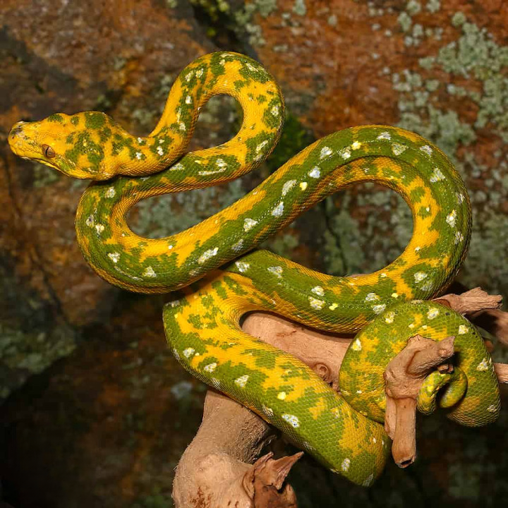 - The Two-Face Biak Green Tree Python is an intriguing and captivating reptile revered by both enthusiasts and collectors. This unique variant of the Morelia viridis species stands out due to its striking coloration, characterized by a distinct dichotomy along the midline of its body. Typically, one side displays the vivid green hue that the Biak morph is famous for, while the other side exhibits a contrasting coloration, often ranging from yellow to blue. This unusual pigmentation is not a mere aesthetic anomaly; it reflects complex genetic interactions and has sparked considerable interest within the herpetological community, emphasizing the importance of genetics in the captivating world of snakes.Native to the rainforests of New Guinea, the Biak Green Tree Python thrives in humid, arboreal environments where it utilizes its stunning coloration as both camouflage and a signal to potential mates. In the wild, these pythons are ambush predators, relying on their exceptional ability to blend seamlessly into the foliage to capture unsuspecting prey, such as birds and small mammals. The Two-Face Biak variant, with its dual coloration, serves the dual purpose of camouflage and a visual display to attract partners during the mating season. This distinct metabolic adaptability ensures that the Two-Face Biak is not only a subject of fascination but also an important contributor to the ecological niche it occupies.In captivity, the Two-Face Biak Green Tree Python requires specific care to thrive, including a controlled environment that mimics its natural habitat in terms of humidity and temperature. Understanding their dietary needs, as these snakes primarily consume rodents, is essential for responsible pet ownership. Additionally, breeders and hobbyists must be cautious of the genetic implications of producing these unique morphs, as selective breeding can have unintended consequences on the overall health of the population. By fostering a deep appreciation for this stunning reptile, enthusiasts contribute to the education and conservation of the species, ensuring that the allure of the Two-Face Biak Green Tree Python is enjoyed for generations to come.